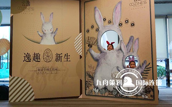 2018年3月31日新世界中国地产 新世界·云逸以“逸趣·新生 复活节创艺乐园”为主题的活动拉开帷幕。此次活动由九舟活动策划公司全程策划执行服务!Bunny兔化身复活节“创艺”使者,开启白云山#寻蛋游记#,与你一起体验魔法变装魅力,探掘 “破蛋新生”的秘密,用手中画笔绘制专属的梦想花园。